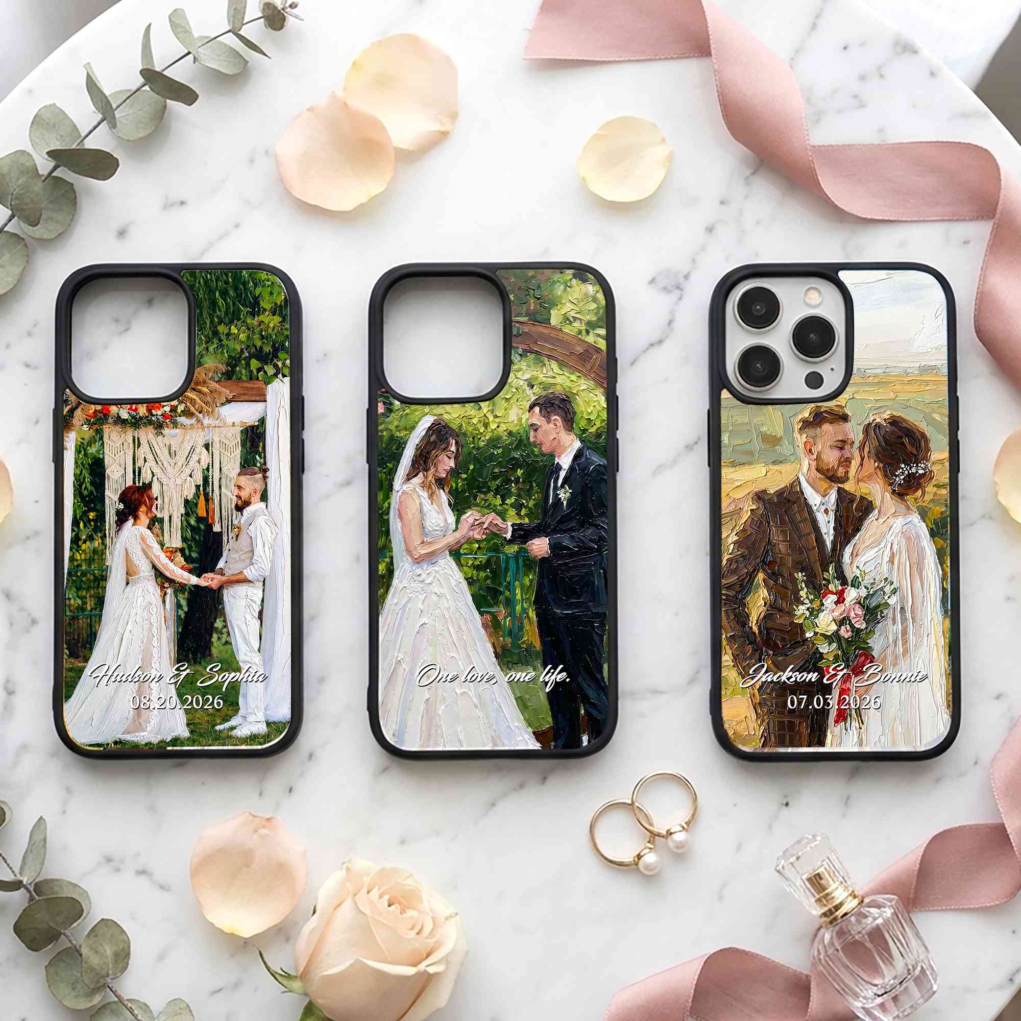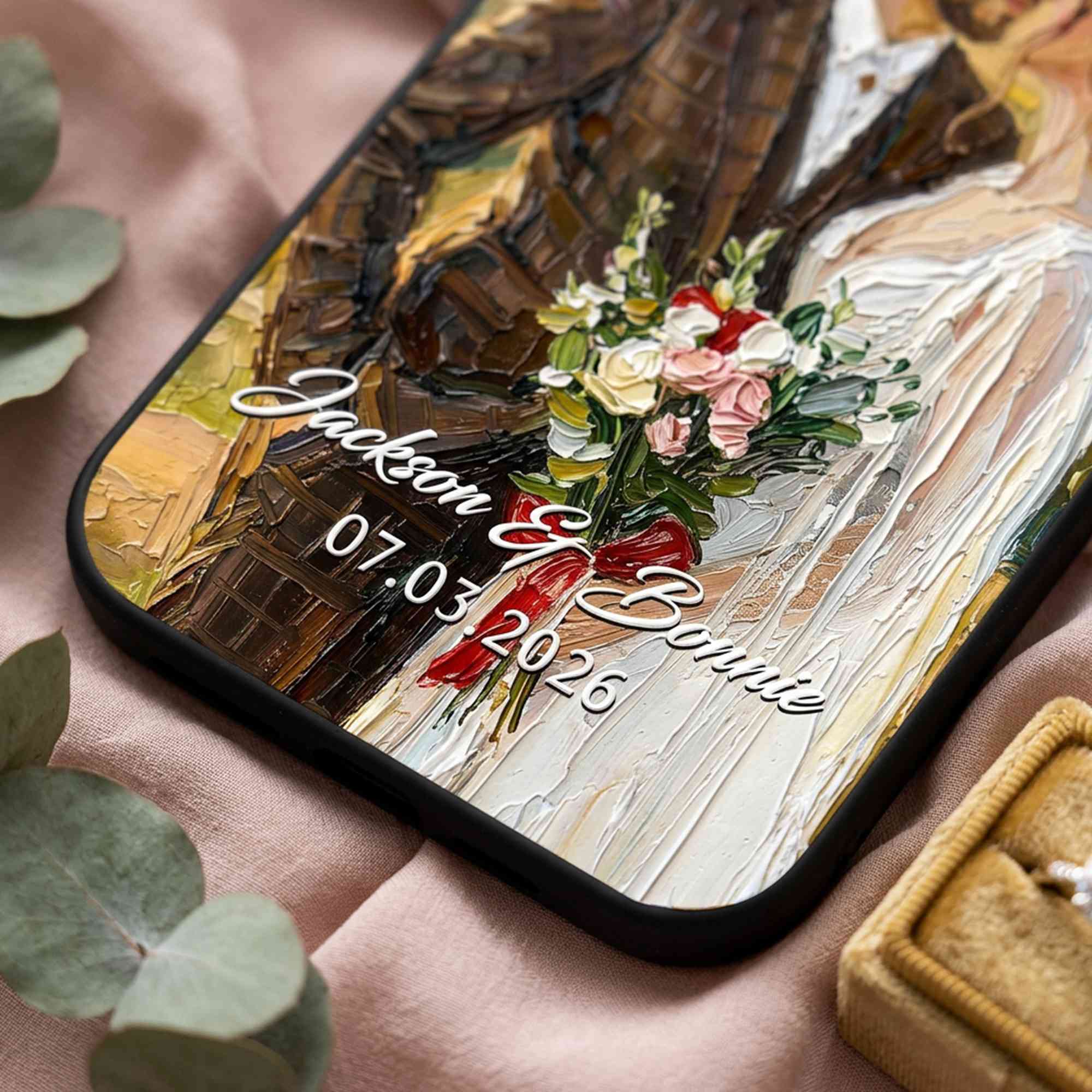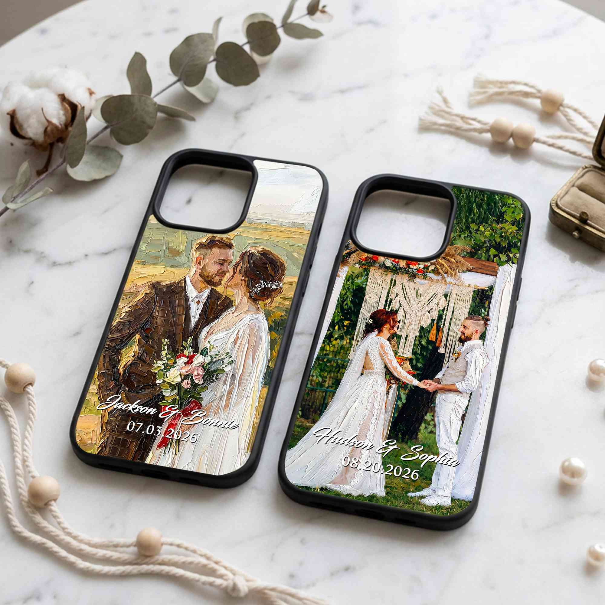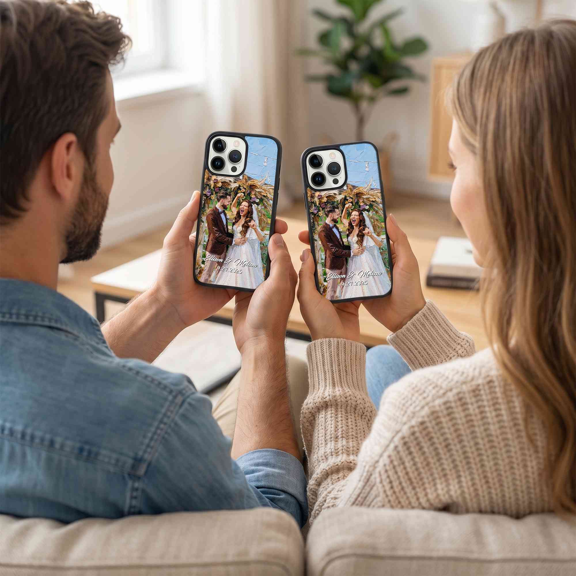 Personalized Oil Painting Couple Portrait Phone Case, Custom Names & Date Wedding Photo TPU Phone Case for iPhone, Anniversary/Wedding Gift for Couple