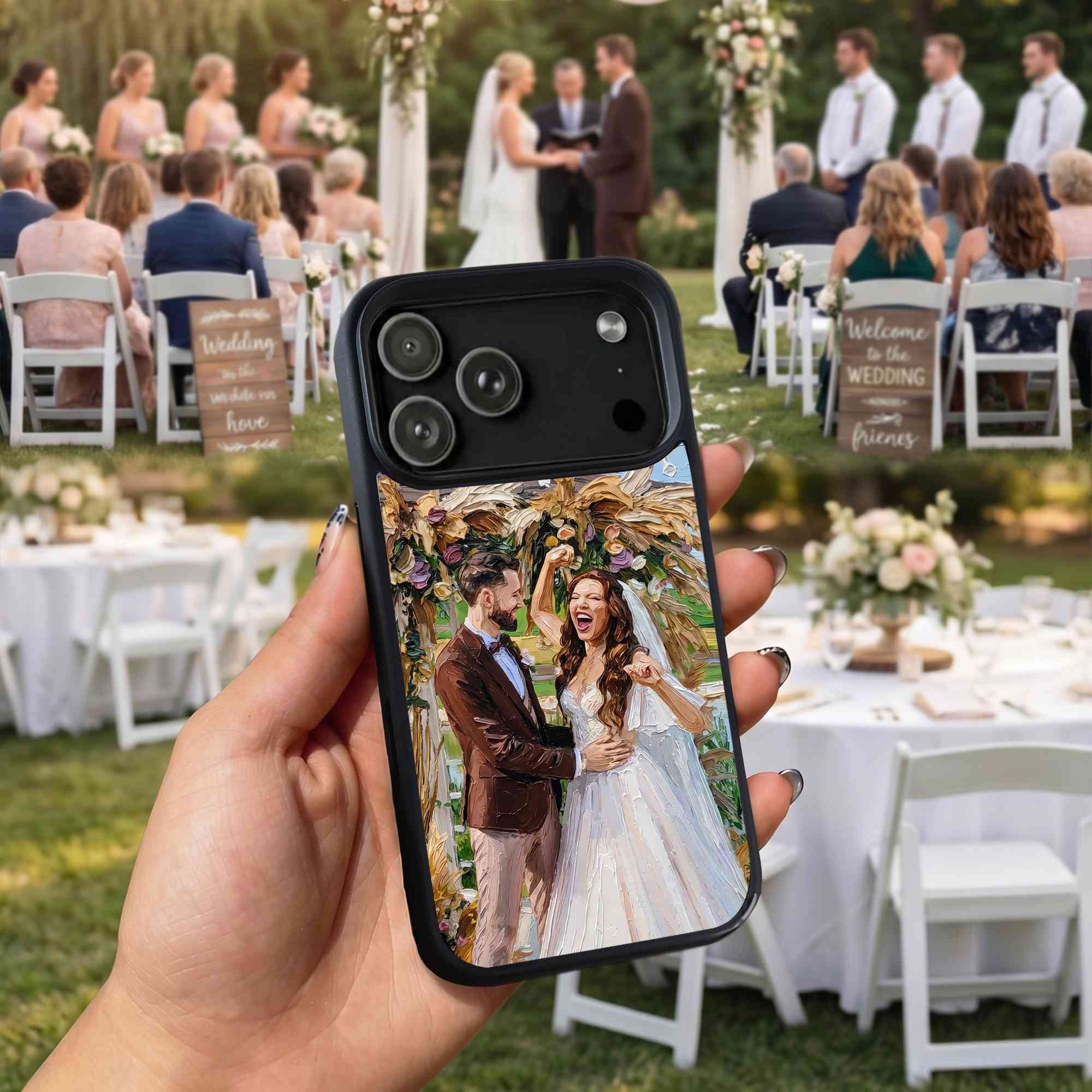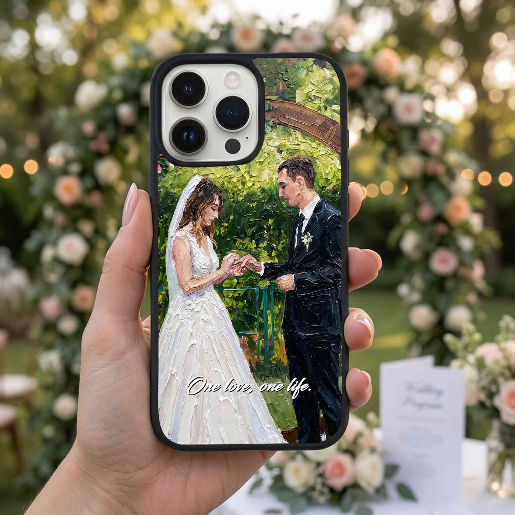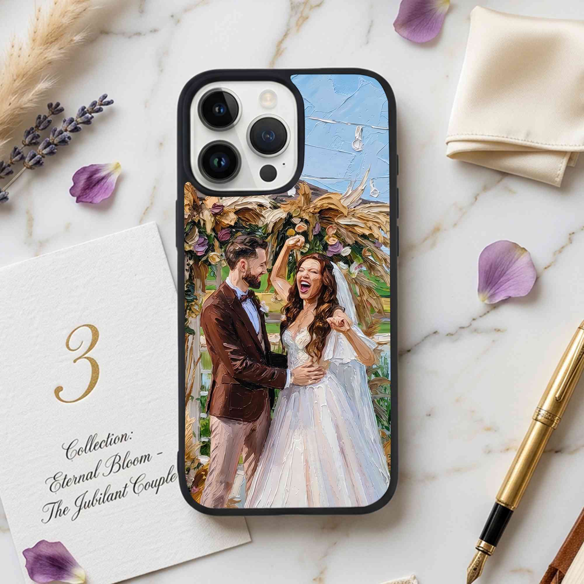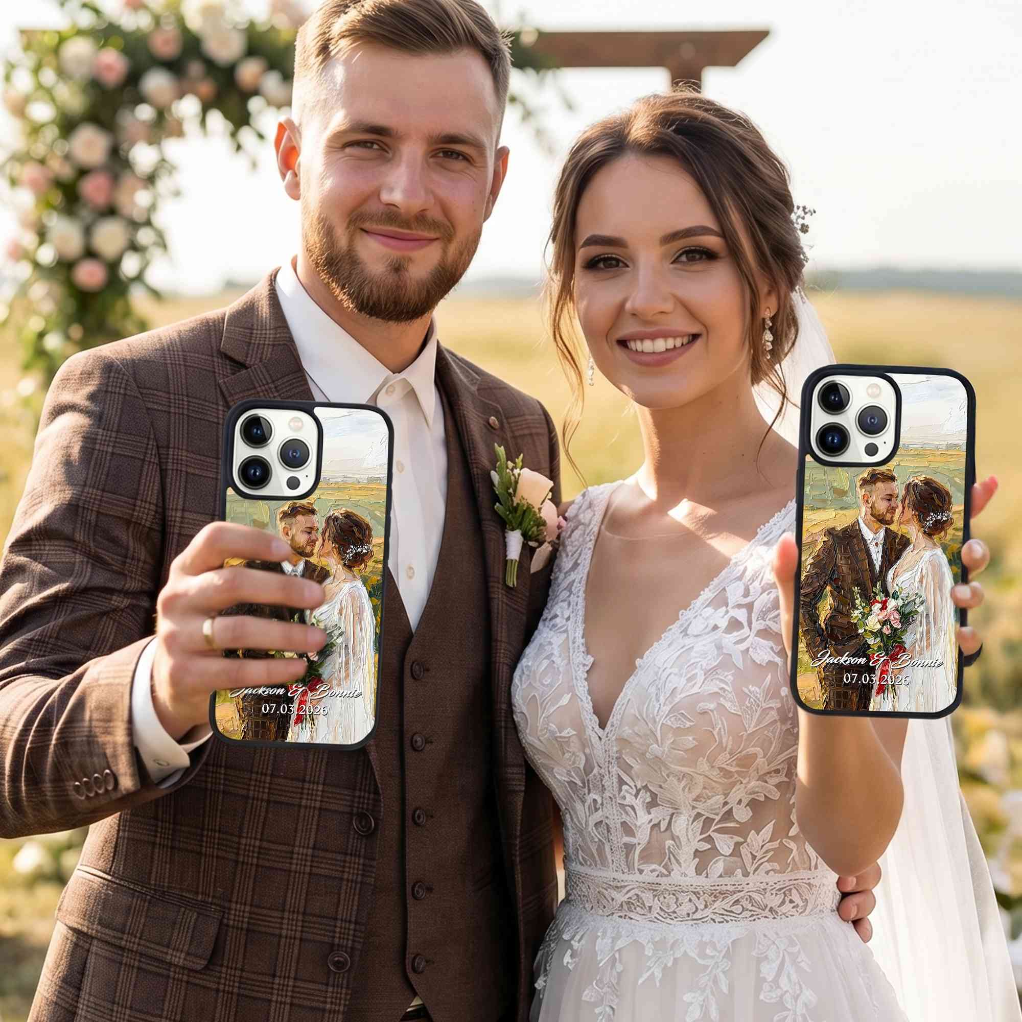 Personalized Oil Painting Couple Portrait Phone Case, Custom Names & Date Wedding Photo TPU Phone Case for iPhone, Anniversary/Wedding Gift for Couple